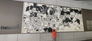Am Rande Brüssels wurden wir herzlich von Christine empfangen, die uns sehr umsorgte. Ihr Haus befand sich am Brüsseler Stadtrand. Es dauerte beim Ausstieg einen Moment, bis ich begriff, dass ihr Stadtteil „Boitsfort“ und das niederländische Pendant „Boosvorde“ der gleiche Ort sind. Ein weiteres Missverständnis ereignete sich tags darauf, denn an der S-Bahn-Station der Linie 8 fährt auch die Straßenbahn mit der gleichen Nummerierung ab – natürlich farblich aufeinander abgestimmt -, sodass Junior und ich mit der S-Bahn einen unfreiwilligen Abstecher in die Provinz unternahmen, anstatt mit der Tram stadteinwärts zu fahren. Hinzu kam, dass die Motivation unserer kleinen Europa-Expedition langsam schwand und wir uns nur noch mühsam zu unserer gebuchten Stadtführung bewegten, die aber dank Waffel- und Pralinenkomponente dennoch ein voller Erfolg war. Zum Atomium kamen wir allerdings nicht – zu weit weg von uns – und auch in Brüssel herrschte zeitweise starkes Regenwetter. Meinen Bildungsauftrag erfüllte ich dennoch, als ich Junior das Gebäude des Europaparlaments zeigte und wir die dazugehörigen Länder der davor wehenden Flaggen durchgingen. Neben Christines Wohnort gab es außerdem einen herrlichen Wald, der uns vergessen ließ, dass wir eigentlich noch immer in einer Großstadt unterwegs sind.