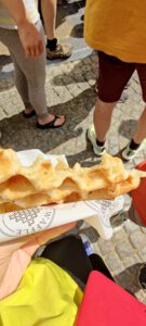 Wie im letzten Beitrag angekündigt, haben wir in Paris die Kuppel der Sacré-Cœur erklommen – 300 Stufen insgesamt, die alle paar Meter mit süffisanten Hinweisschildern über die verbliebene Anzahl der Stufen begleitet wurden. Am Ende bot sich schließlich doch ein schöner Blick über die französische Hauptstadt – non, je ne regrette rien – trotz Regenwetters. Am nächsten Tag erkundeten wir Paris bei strahlendem Sonnenschein zu Wasser mit dem BatoBus und machten an der Notre Dame Halt, die seit dem verheerenden Brand 2019 umfangreich restauriert wird und deren Wiedereröffnung auf Ende dieses Jahres datiert ist. Nach einem weiteren Zwischenstopp am Arc de Triomphe freuten wir uns schließlich auf unser nächstes Highlight tags darauf: das Beachvolleyballspiel im Rahmen der Olympischen Spiele 2024 am Fuße des Eiffelturms. Da wir für den gleichen Tag unsere Weiterfahrt nach Brüssel geplant hatten, hatte ich extra eine private Gepäckaufbewahrung in der Nähe der Veranstaltung gebucht. Doch wie das Leben so spielt, war der Laden geschlossen und wir mussten uns nach Alternativen umsehen. Schließlich konnten wir bei einer Subway-Filiale unseren Krempel loswerden, sodass wir nach einer Stunde Verspätung doch noch zum Spiel gehen konnten. Angekommen herrschte bereits eine ausgelassene Stimmung. Nach jedem Punkt drehte der DJ auf und animierte das Publikum zu „Ace, Ace!“ oder „Block!“-Rufen. Wir ließen uns von der Party – denn etwas anderes war es im Grunde nicht – hinreißen und verbrachten einen großartigen Vormittag, bevor wir schließlich in unseren Zug nach Brüssel stiegen.